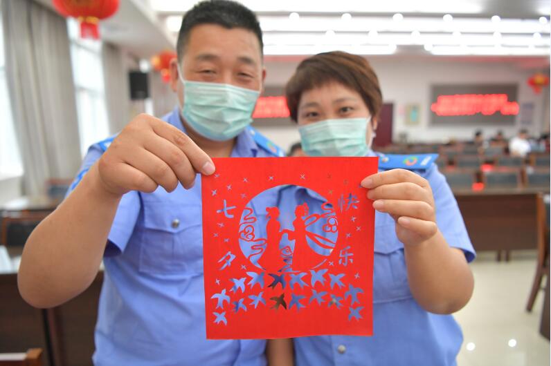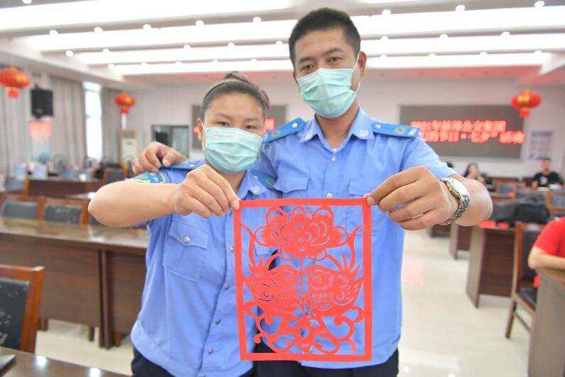 隨后,非物質(zhì)文化遺產(chǎn)蚌埠區(qū)級(jí)剪紙傳承人吳桂蘭登場(chǎng),介紹剪紙藝術(shù)文化,并現(xiàn)場(chǎng)教授剪紙技藝,大家興趣濃厚,認(rèn)真學(xué)習(xí),積極向吳老師討教,個(gè)個(gè)學(xué)得興致盎然,不一會(huì)兒,一幅幅愛情主題的作品躍然于剪刀下。大家爭(zhēng)先恐后地展示著自己的作品,現(xiàn)場(chǎng)歡聲笑語不斷。吳桂蘭表示,兩天前接到活動(dòng)邀請(qǐng),便著手準(zhǔn)備,抽出時(shí)間剪了很多關(guān)于七夕和公交主題的作品,送給公交車夫婦們,向他們表達(dá)敬意和節(jié)日的祝福。